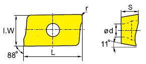 Application: With high cutting edge strength and toughness, this insert is highly recommended for semi-finish milling of stainless steels and steels at medium speeds.