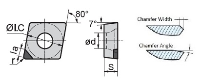 Application: This positive insert has double brazed PCBN tips with chamfering and honing. It offers superb wear and heat resistance, and is ideal for high speed continuous or minor interrupted turning of hardened steels with 45-65 HRC with improved productivity.