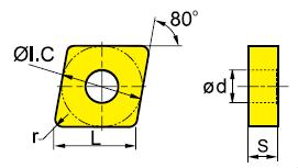 Application: This insert's coatings improve the impact toughness and abrasion resistance. Makes it suitable for finishing and semi-finishing of steel at high speed. The wiper design allows doubling feedrate while producing the same surface finish.
