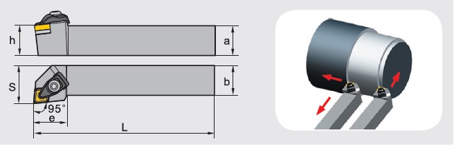 Right/left hand, double clamp type toolholder, with negative CN_ _ inserts for external turning and facing