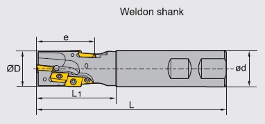 ![]() Part Number: EMP04-1.00"-XP1.00"-AP11-02 Mounting Type: Weldon type; Number of Flutes (Z)=2; Number of Inserts=8; Kr=90° Dimension (inch): D=1.00, d=1.00, L=5.00, L1=2.75, e=1.531 Associated Inserts: APKT11T304, APKT11T308, APKT11T312, APKT11T316 Associated Accessories: Screw I60M2.5x6.5T. Wrench WT08IS ![]() Note: Milling cutter sold without inserts. Torque wrench and tightening screws included. |