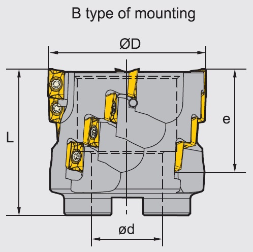 ![]() Part Number: EMP03-100-B40-AP11-06 Type: Type B mounting; Number of Teeth (Z)=6; Number of Inserts=24; Kr=90° Dimension (mm): D=100, d=40, L=63, e=39 Associated Inserts: APKT11T304, APKT11T308, APKT11T312, APKT11T316 Associated Accessories: Screw I60M2.5x6.5T. Wrench WT08IS ![]() Note: Milling cutter sold without inserts. Torque wrench and tightening screws included. |