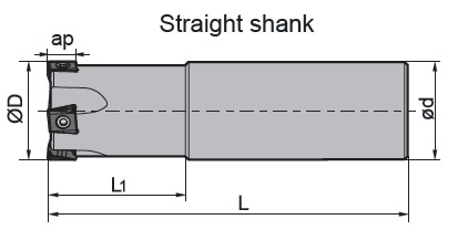 Mounting Type: Straight Shank. Number of Teeth (Z)=3. Number of Inserts=16; Kr=90°