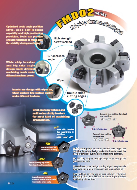 > FMD02 Series Face Milling Cutters with 10-Edge PNEG Inserts