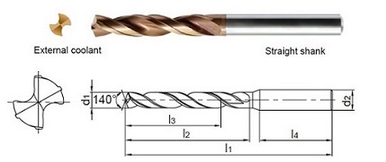 | Part Number | Drill Dia. (d1) | Shank Dia. (d2) | Overall Length (L1) | Flute Length (L2) | Recom. Drilling Depth (L3) | Shank Length (L4) |