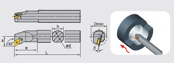 Right/left hand 93° entering angle, lever clamp type boring bars for internal turning with negative DN_ _ inserts