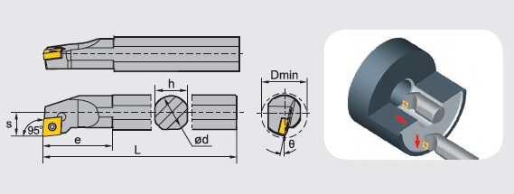 Right/left hand, 95° entering angle, screw-lock type boring bars for internal turning with positive CC_ _ inserts