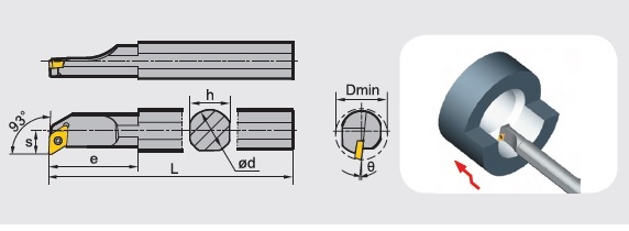 Right/left hand, 93° entering angle, screw-lock type boring bars for internal turning with positive DC_ _ inserts
