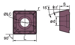 Application: This indexable insert has highly wear-resistant coating and high edge strength. With special EM chip breaker, it is used on ZTD Series Drills as peripheral insert in conjunction with SPGT060204-EM YBG212 insert as central insert for drilling of stainless steels at high speeds under challenging working conditions.