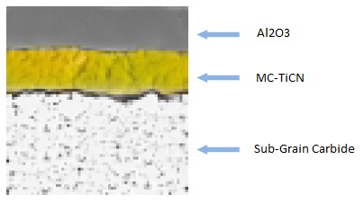 YB7305, YB7310, YB7315 Grade Description: Thick TiCN layer + Ultra-Thick Fine-Grain Al2O3 (CVD) Coated Fine Carbide (New!)