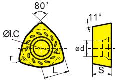 Application: This insert offers excellent combination of toughness and strength. It is suitable for general high-feed milling (HFM) of steels and stainless steels with hardness at or below HRC 45 in average machining condition.